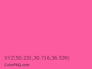 XYZ 50.231,30.716,36.539 Color is a light rose color and the nearest color is Brilliant Rose #ff55a3. Hex code #fc5ba0 and RGB value is rgb(252,91,160). In RGB color space, this color is composed of 99% red, 36% green, 63% blue, In CMYK color space, this color is composed of 0% cyan, 64% magenta, 37% yellow , 1% black , In HSL color space, this color has a hue angle of 334° , 96% saturation and 67% lightness.