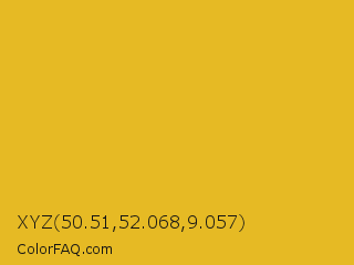 XYZ 50.51,52.068,9.057 Color is a normal yellow color and the nearest color is Urobilin #e1ad21. Hex code #e6ba24 and RGB value is rgb(230,186,36). In RGB color space, this color is composed of 90% red, 73% green, 14% blue, In CMYK color space, this color is composed of 0% cyan, 19% magenta, 84% yellow , 10% black , In HSL color space, this color has a hue angle of 46° , 80% saturation and 52% lightness.