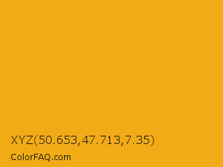 XYZ 50.653,47.713,7.35 Color is a normal orange color and the nearest color is Buttercup #f3ad16. Hex code #f0ab17 and RGB value is rgb(240,171,23). In RGB color space, this color is composed of 94% red, 67% green, 9% blue, In CMYK color space, this color is composed of 0% cyan, 29% magenta, 90% yellow , 6% black , In HSL color space, this color has a hue angle of 41° , 88% saturation and 52% lightness.