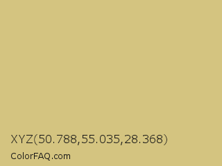 XYZ 50.788,55.035,28.368 Color is a light yellow color and the nearest color is Straw #d4bf8d. Hex code #d4c480 and RGB value is rgb(212,196,128). In RGB color space, this color is composed of 83% red, 77% green, 50% blue, In CMYK color space, this color is composed of 0% cyan, 8% magenta, 40% yellow , 17% black , In HSL color space, this color has a hue angle of 49° , 49% saturation and 67% lightness.