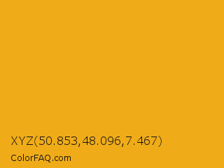 XYZ 50.853,48.096,7.467 Color is a normal orange color and the nearest color is Buttercup #f3ad16. Hex code #f0ac18 and RGB value is rgb(240,172,24). In RGB color space, this color is composed of 94% red, 67% green, 9% blue, In CMYK color space, this color is composed of 0% cyan, 28% magenta, 90% yellow , 6% black , In HSL color space, this color has a hue angle of 41° , 88% saturation and 52% lightness.