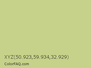 XYZ 50.923,59.934,32.929 Color is a light yellow color and the nearest color is Pine Glade #c7cd90. Hex code #c6d28a and RGB value is rgb(198,210,138). In RGB color space, this color is composed of 78% red, 82% green, 54% blue, In CMYK color space, this color is composed of 6% cyan, 0% magenta, 34% yellow , 18% black , In HSL color space, this color has a hue angle of 70° , 44% saturation and 68% lightness.