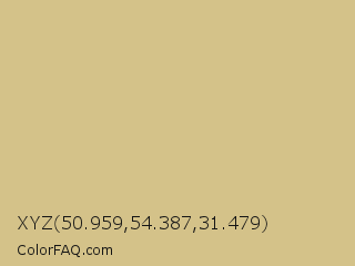 XYZ 50.959,54.387,31.479 Color is a light yellow color and the nearest color is Straw #d4bf8d. Hex code #d4c289 and RGB value is rgb(212,194,137). In RGB color space, this color is composed of 83% red, 76% green, 54% blue, In CMYK color space, this color is composed of 0% cyan, 8% magenta, 35% yellow , 17% black , In HSL color space, this color has a hue angle of 46° , 47% saturation and 68% lightness.