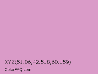 XYZ 51.06,42.518,60.159 Color is a light magenta color and the nearest color is Light Medium Orchid #d39bcb. Hex code #da9bc8 and RGB value is rgb(218,155,200). In RGB color space, this color is composed of 85% red, 61% green, 78% blue, In CMYK color space, this color is composed of 0% cyan, 29% magenta, 8% yellow , 15% black , In HSL color space, this color has a hue angle of 317° , 46% saturation and 73% lightness.