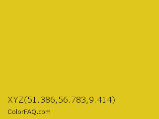 XYZ 51.386,56.783,9.414 Color is a normal yellow color and the nearest color is Sunflower #e4d422. Hex code #e0c71d and RGB value is rgb(224,199,29). In RGB color space, this color is composed of 88% red, 78% green, 11% blue, In CMYK color space, this color is composed of 0% cyan, 11% magenta, 87% yellow , 12% black , In HSL color space, this color has a hue angle of 52° , 77% saturation and 50% lightness.