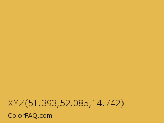 XYZ 51.393,52.085,14.742 Color is a light orange color and the nearest color is Anzac #e0b646. Hex code #e6b94f and RGB value is rgb(230,185,79). In RGB color space, this color is composed of 90% red, 73% green, 31% blue, In CMYK color space, this color is composed of 0% cyan, 20% magenta, 66% yellow , 10% black , In HSL color space, this color has a hue angle of 42° , 75% saturation and 61% lightness.