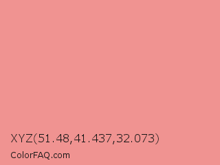 XYZ 51.48,41.437,32.073 Color is a light red color and the nearest color is Sea Pink #ed989e. Hex code #f09391 and RGB value is rgb(240,147,145). In RGB color space, this color is composed of 94% red, 58% green, 57% blue, In CMYK color space, this color is composed of 0% cyan, 39% magenta, 40% yellow , 6% black , In HSL color space, this color has a hue angle of 1° , 76% saturation and 75% lightness.