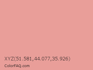 XYZ 51.581,44.077,35.926 Color is a light red color and the nearest color is Sea Pink #ed989e. Hex code #e99e99 and RGB value is rgb(233,158,153). In RGB color space, this color is composed of 91% red, 62% green, 60% blue, In CMYK color space, this color is composed of 0% cyan, 32% magenta, 34% yellow , 9% black , In HSL color space, this color has a hue angle of 4° , 65% saturation and 76% lightness.