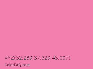 XYZ 52.289,37.329,45.007 Color is a light rose color and the nearest color is Tickle Me Pink Crayola #fc80a5. Hex code #f37faf and RGB value is rgb(243,127,175). In RGB color space, this color is composed of 95% red, 50% green, 69% blue, In CMYK color space, this color is composed of 0% cyan, 48% magenta, 28% yellow , 5% black , In HSL color space, this color has a hue angle of 335° , 83% saturation and 73% lightness.