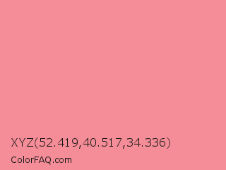 XYZ 52.419,40.517,34.336 Color is a light red color and the nearest color is Sea Pink #ed989e. Hex code #f48d97 and RGB value is rgb(244,141,151). In RGB color space, this color is composed of 96% red, 55% green, 59% blue, In CMYK color space, this color is composed of 0% cyan, 42% magenta, 38% yellow , 4% black , In HSL color space, this color has a hue angle of 354° , 82% saturation and 75% lightness.