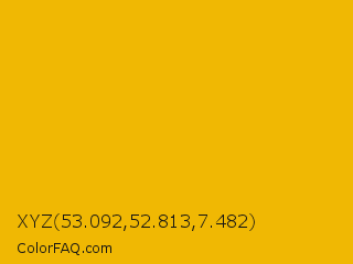 XYZ 53.092,52.813,7.482 Color is a normal yellow color and the nearest color is Corn #e7bf05. Hex code #f0b803 and RGB value is rgb(240,184,3). In RGB color space, this color is composed of 94% red, 72% green, 1% blue, In CMYK color space, this color is composed of 0% cyan, 23% magenta, 99% yellow , 6% black , In HSL color space, this color has a hue angle of 46° , 98% saturation and 48% lightness.