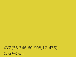 XYZ 53.346,60.908,12.435 Color is a normal yellow color and the nearest color is Sandstorm #ecd540. Hex code #ded036 and RGB value is rgb(222,208,54). In RGB color space, this color is composed of 87% red, 82% green, 21% blue, In CMYK color space, this color is composed of 0% cyan, 6% magenta, 76% yellow , 13% black , In HSL color space, this color has a hue angle of 55° , 72% saturation and 54% lightness.