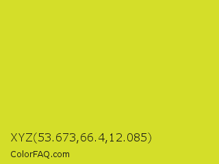 XYZ 53.673,66.4,12.085 Color is a normal yellow color and the nearest color is Pear #d1e231. Hex code #d4de29 and RGB value is rgb(212,222,41). In RGB color space, this color is composed of 83% red, 87% green, 16% blue, In CMYK color space, this color is composed of 5% cyan, 0% magenta, 82% yellow , 13% black , In HSL color space, this color has a hue angle of 63° , 73% saturation and 52% lightness.