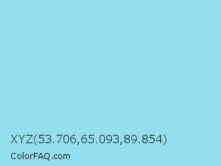 XYZ 53.706,65.093,89.854 Color is a light cyan color and the nearest color is Blizzard Blue Crayola #a3e3ed. Hex code #93dfed and RGB value is rgb(147,223,237). In RGB color space, this color is composed of 58% red, 87% green, 93% blue, In CMYK color space, this color is composed of 38% cyan, 6% magenta, 0% yellow , 7% black , In HSL color space, this color has a hue angle of 189° , 71% saturation and 75% lightness.