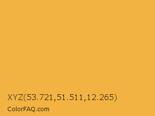 XYZ 53.721,51.511,12.265 Color is a normal orange color and the nearest color is Maximum Yellow Red #f2ba49. Hex code #f2b342 and RGB value is rgb(242,179,66). In RGB color space, this color is composed of 95% red, 70% green, 26% blue, In CMYK color space, this color is composed of 0% cyan, 26% magenta, 73% yellow , 5% black , In HSL color space, this color has a hue angle of 39° , 87% saturation and 60% lightness.