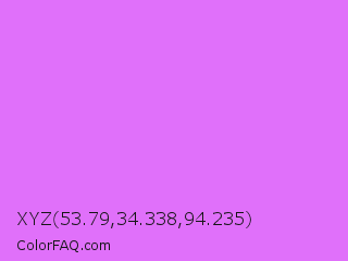 XYZ 53.79,34.338,94.235 Color is a light purple color and the nearest color is Heliotrope #df73ff. Hex code #e070fa and RGB value is rgb(224,112,250). In RGB color space, this color is composed of 88% red, 44% green, 98% blue, In CMYK color space, this color is composed of 10% cyan, 55% magenta, 0% yellow , 2% black , In HSL color space, this color has a hue angle of 289° , 93% saturation and 71% lightness.