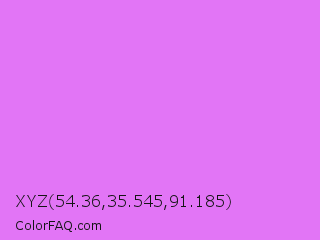 XYZ 54.36,35.545,91.185 Color is a light purple color and the nearest color is Heliotrope #df73ff. Hex code #e275f6 and RGB value is rgb(226,117,246). In RGB color space, this color is composed of 89% red, 46% green, 96% blue, In CMYK color space, this color is composed of 8% cyan, 52% magenta, 0% yellow , 4% black , In HSL color space, this color has a hue angle of 291° , 88% saturation and 71% lightness.