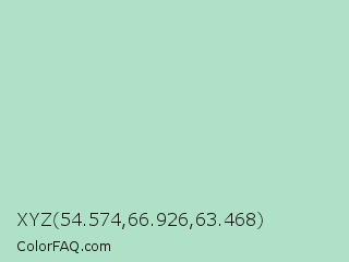 XYZ 54.574,66.926,63.468 Color is a light green color and the nearest color is Padua #ade6c4. Hex code #aee1c6 and RGB value is rgb(174,225,198). In RGB color space, this color is composed of 68% red, 88% green, 78% blue, In CMYK color space, this color is composed of 23% cyan, 0% magenta, 12% yellow , 12% black , In HSL color space, this color has a hue angle of 148° , 46% saturation and 78% lightness.