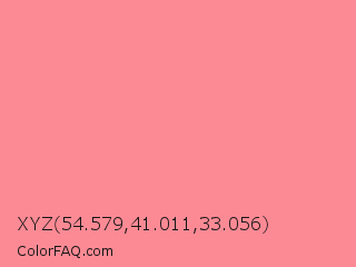 XYZ 54.579,41.011,33.056 Color is a light red color and the nearest color is Tulip #ff878d. Hex code #fc8a94 and RGB value is rgb(252,138,148). In RGB color space, this color is composed of 99% red, 54% green, 58% blue, In CMYK color space, this color is composed of 0% cyan, 45% magenta, 41% yellow , 1% black , In HSL color space, this color has a hue angle of 355° , 95% saturation and 76% lightness.