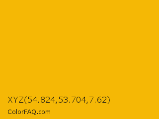 XYZ 54.824,53.704,7.62 Color is a normal orange color and the nearest color is Selective Yellow #ffba00. Hex code #f5b805 and RGB value is rgb(245,184,5). In RGB color space, this color is composed of 96% red, 72% green, 2% blue, In CMYK color space, this color is composed of 0% cyan, 25% magenta, 98% yellow , 4% black , In HSL color space, this color has a hue angle of 45° , 96% saturation and 49% lightness.