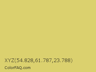 XYZ 54.828,61.787,23.788 Color is a light yellow color and the nearest color is Chenin #dfcd6f. Hex code #dbd16e and RGB value is rgb(219,209,110). In RGB color space, this color is composed of 86% red, 82% green, 43% blue, In CMYK color space, this color is composed of 0% cyan, 5% magenta, 50% yellow , 14% black , In HSL color space, this color has a hue angle of 54° , 60% saturation and 65% lightness.