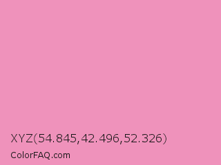 XYZ 54.845,42.496,52.326 Color is a light rose color and the nearest color is Amaranth Pink #f19cbb. Hex code #ef92bb and RGB value is rgb(239,146,187). In RGB color space, this color is composed of 94% red, 57% green, 73% blue, In CMYK color space, this color is composed of 0% cyan, 39% magenta, 22% yellow , 6% black , In HSL color space, this color has a hue angle of 334° , 74% saturation and 75% lightness.
