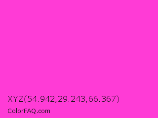 XYZ 54.942,29.243,66.367 Color is a light magenta color and the nearest color is Razzle Dazzle Rose #ff33cc. Hex code #ff3bd6 and RGB value is rgb(255,59,214). In RGB color space, this color is composed of 100% red, 23% green, 84% blue, In CMYK color space, this color is composed of 0% cyan, 77% magenta, 16% yellow , 0% black , In HSL color space, this color has a hue angle of 313° , 100% saturation and 62% lightness.