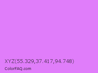XYZ 55.329,37.417,94.748 Color is a light purple color and the nearest color is Heliotrope #df73ff. Hex code #e07dfa and RGB value is rgb(224,125,250). In RGB color space, this color is composed of 88% red, 49% green, 98% blue, In CMYK color space, this color is composed of 10% cyan, 50% magenta, 0% yellow , 2% black , In HSL color space, this color has a hue angle of 288° , 93% saturation and 74% lightness.