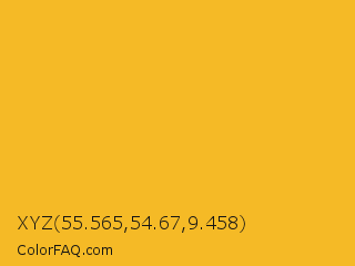 XYZ 55.565,54.67,9.458 Color is a normal orange color and the nearest color is Lightning Yellow #fcc01e. Hex code #f5ba26 and RGB value is rgb(245,186,38). In RGB color space, this color is composed of 96% red, 73% green, 15% blue, In CMYK color space, this color is composed of 0% cyan, 24% magenta, 84% yellow , 4% black , In HSL color space, this color has a hue angle of 43° , 91% saturation and 55% lightness.