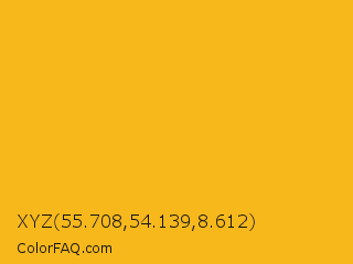 XYZ 55.708,54.139,8.612 Color is a normal orange color and the nearest color is Lightning Yellow #fcc01e. Hex code #f7b81c and RGB value is rgb(247,184,28). In RGB color space, this color is composed of 97% red, 72% green, 11% blue, In CMYK color space, this color is composed of 0% cyan, 26% magenta, 89% yellow , 3% black , In HSL color space, this color has a hue angle of 43° , 93% saturation and 54% lightness.