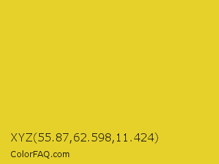 XYZ 55.87,62.598,11.424 Color is a normal yellow color and the nearest color is Sunflower #e4d422. Hex code #e6d12b and RGB value is rgb(230,209,43). In RGB color space, this color is composed of 90% red, 82% green, 17% blue, In CMYK color space, this color is composed of 0% cyan, 9% magenta, 81% yellow , 10% black , In HSL color space, this color has a hue angle of 53° , 79% saturation and 54% lightness.