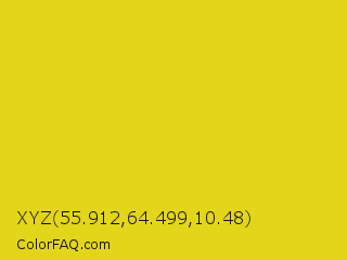 XYZ 55.912,64.499,10.48 Color is a normal yellow color and the nearest color is Barberry #ded717. Hex code #e3d61a and RGB value is rgb(227,214,26). In RGB color space, this color is composed of 89% red, 84% green, 10% blue, In CMYK color space, this color is composed of 0% cyan, 6% magenta, 89% yellow , 11% black , In HSL color space, this color has a hue angle of 56° , 79% saturation and 50% lightness.
