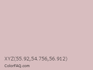 XYZ 55.92,54.756,56.912 Color is a light red color and the nearest color is Blossom #dcb4bc. Hex code #d8bdbf and RGB value is rgb(216,189,191). In RGB color space, this color is composed of 85% red, 74% green, 75% blue, In CMYK color space, this color is composed of 0% cyan, 13% magenta, 12% yellow , 15% black , In HSL color space, this color has a hue angle of 356° , 26% saturation and 79% lightness.