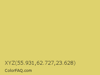 XYZ 55.931,62.727,23.628 Color is a light yellow color and the nearest color is Chenin #dfcd6f. Hex code #ded26d and RGB value is rgb(222,210,109). In RGB color space, this color is composed of 87% red, 82% green, 43% blue, In CMYK color space, this color is composed of 0% cyan, 5% magenta, 51% yellow , 13% black , In HSL color space, this color has a hue angle of 54° , 63% saturation and 65% lightness.