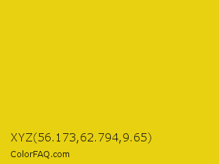 XYZ 56.173,62.794,9.65 Color is a normal yellow color and the nearest color is Citrine #e4d00a. Hex code #e8d110 and RGB value is rgb(232,209,16). In RGB color space, this color is composed of 91% red, 82% green, 6% blue, In CMYK color space, this color is composed of 0% cyan, 10% magenta, 93% yellow , 9% black , In HSL color space, this color has a hue angle of 54° , 87% saturation and 49% lightness.