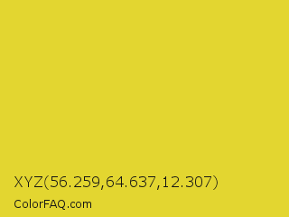 XYZ 56.259,64.637,12.307 Color is a normal yellow color and the nearest color is Golden Dream #f0d52d. Hex code #e3d630 and RGB value is rgb(227,214,48). In RGB color space, this color is composed of 89% red, 84% green, 19% blue, In CMYK color space, this color is composed of 0% cyan, 6% magenta, 79% yellow , 11% black , In HSL color space, this color has a hue angle of 56° , 76% saturation and 54% lightness.