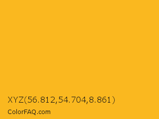 XYZ 56.812,54.704,8.861 Color is a normal orange color and the nearest color is My Sin #ffb31f. Hex code #fab81f and RGB value is rgb(250,184,31). In RGB color space, this color is composed of 98% red, 72% green, 12% blue, In CMYK color space, this color is composed of 0% cyan, 26% magenta, 88% yellow , 2% black , In HSL color space, this color has a hue angle of 42° , 96% saturation and 55% lightness.
