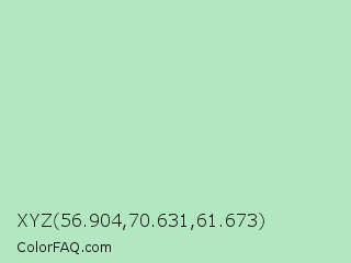 XYZ 56.904,70.631,61.673 Color is a light green color and the nearest color is Fringy Flower #b1e2c1. Hex code #b3e7c2 and RGB value is rgb(179,231,194). In RGB color space, this color is composed of 70% red, 91% green, 76% blue, In CMYK color space, this color is composed of 23% cyan, 0% magenta, 16% yellow , 9% black , In HSL color space, this color has a hue angle of 137° , 52% saturation and 80% lightness.