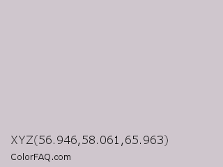 XYZ 56.946,58.061,65.963 Color is a light magenta color and the nearest color is Swirl #d3cdc5. Hex code #cfc6cd and RGB value is rgb(207,198,205). In RGB color space, this color is composed of 81% red, 78% green, 80% blue, In CMYK color space, this color is composed of 0% cyan, 4% magenta, 1% yellow , 19% black , In HSL color space, this color has a hue angle of 313° , 9% saturation and 79% lightness.