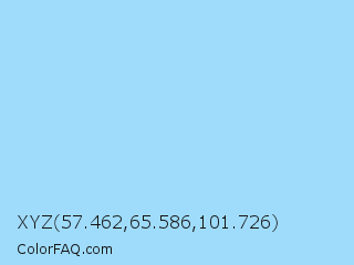 XYZ 57.462,65.586,101.726 Color is a very light blue color and the nearest color is Anakiwa #9de5ff. Hex code #9fdcfc and RGB value is rgb(159,220,252). In RGB color space, this color is composed of 62% red, 86% green, 99% blue, In CMYK color space, this color is composed of 37% cyan, 13% magenta, 0% yellow , 1% black , In HSL color space, this color has a hue angle of 201° , 94% saturation and 81% lightness.