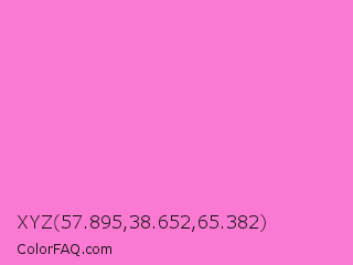 XYZ 57.895,38.652,65.382 Color is a light magenta color and the nearest color is Princess Perfume #ff85cf. Hex code #fa79d2 and RGB value is rgb(250,121,210). In RGB color space, this color is composed of 98% red, 47% green, 82% blue, In CMYK color space, this color is composed of 0% cyan, 52% magenta, 16% yellow , 2% black , In HSL color space, this color has a hue angle of 319° , 93% saturation and 73% lightness.