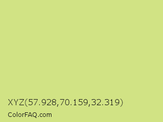 XYZ 57.928,70.159,32.319 Color is a light lime color and the nearest color is Medium Spring Bud #c9dc87. Hex code #d1e384 and RGB value is rgb(209,227,132). In RGB color space, this color is composed of 82% red, 89% green, 52% blue, In CMYK color space, this color is composed of 8% cyan, 0% magenta, 42% yellow , 11% black , In HSL color space, this color has a hue angle of 71° , 63% saturation and 70% lightness.