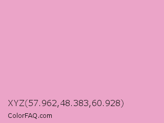 XYZ 57.962,48.383,60.928 Color is a light rose color and the nearest color is Kobi #e79fc4. Hex code #eba4c8 and RGB value is rgb(235,164,200). In RGB color space, this color is composed of 92% red, 64% green, 78% blue, In CMYK color space, this color is composed of 0% cyan, 30% magenta, 15% yellow , 8% black , In HSL color space, this color has a hue angle of 330° , 64% saturation and 78% lightness.