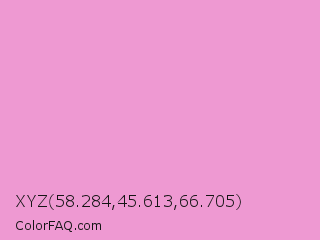XYZ 58.284,45.613,66.705 Color is a light magenta color and the nearest color is Light Orchid #e29cd2. Hex code #ee99d2 and RGB value is rgb(238,153,210). In RGB color space, this color is composed of 93% red, 60% green, 82% blue, In CMYK color space, this color is composed of 0% cyan, 36% magenta, 12% yellow , 7% black , In HSL color space, this color has a hue angle of 320° , 71% saturation and 77% lightness.