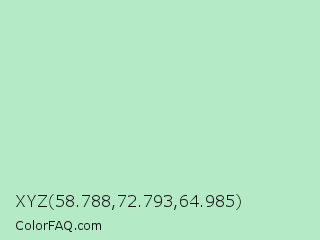 XYZ 58.788,72.793,64.985 Color is a very light green color and the nearest color is Padua #ade6c4. Hex code #b5eac7 and RGB value is rgb(181,234,199). In RGB color space, this color is composed of 71% red, 92% green, 78% blue, In CMYK color space, this color is composed of 23% cyan, 0% magenta, 15% yellow , 8% black , In HSL color space, this color has a hue angle of 140° , 56% saturation and 81% lightness.