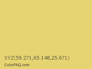 XYZ 59.271,65.148,25.671 Color is a light yellow color and the nearest color is Straw #e4d96f. Hex code #e6d473 and RGB value is rgb(230,212,115). In RGB color space, this color is composed of 90% red, 83% green, 45% blue, In CMYK color space, this color is composed of 0% cyan, 8% magenta, 50% yellow , 10% black , In HSL color space, this color has a hue angle of 51° , 70% saturation and 68% lightness.