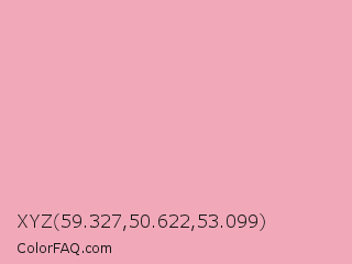 XYZ 59.327,50.622,53.099 Color is a light red color and the nearest color is Amaranth Pink #f19cbb. Hex code #f1a9ba and RGB value is rgb(241,169,186). In RGB color space, this color is composed of 95% red, 66% green, 73% blue, In CMYK color space, this color is composed of 0% cyan, 30% magenta, 23% yellow , 5% black , In HSL color space, this color has a hue angle of 346° , 72% saturation and 80% lightness.