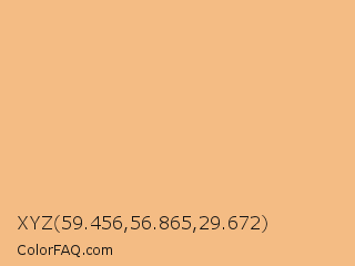 XYZ 59.456,56.865,29.672 Color is a light orange color and the nearest color is Macaroni And Cheese #ffbd88. Hex code #f4bc84 and RGB value is rgb(244,188,132). In RGB color space, this color is composed of 96% red, 74% green, 52% blue, In CMYK color space, this color is composed of 0% cyan, 23% magenta, 46% yellow , 4% black , In HSL color space, this color has a hue angle of 30° , 84% saturation and 74% lightness.