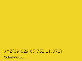 XYZ 59.829,65.752,11.372 Color is a normal yellow color and the nearest color is Golden Dream #f0d52d. Hex code #f0d426 and RGB value is rgb(240,212,38). In RGB color space, this color is composed of 94% red, 83% green, 15% blue, In CMYK color space, this color is composed of 0% cyan, 12% magenta, 84% yellow , 6% black , In HSL color space, this color has a hue angle of 52° , 87% saturation and 55% lightness.