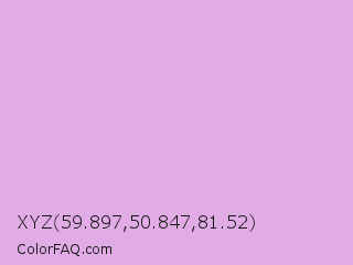 XYZ 59.897,50.847,81.52 Color is a light magenta color and the nearest color is Medium Lavender Magenta #dda0dd. Hex code #e1abe6 and RGB value is rgb(225,171,230). In RGB color space, this color is composed of 88% red, 67% green, 90% blue, In CMYK color space, this color is composed of 2% cyan, 26% magenta, 0% yellow , 10% black , In HSL color space, this color has a hue angle of 295° , 54% saturation and 79% lightness.